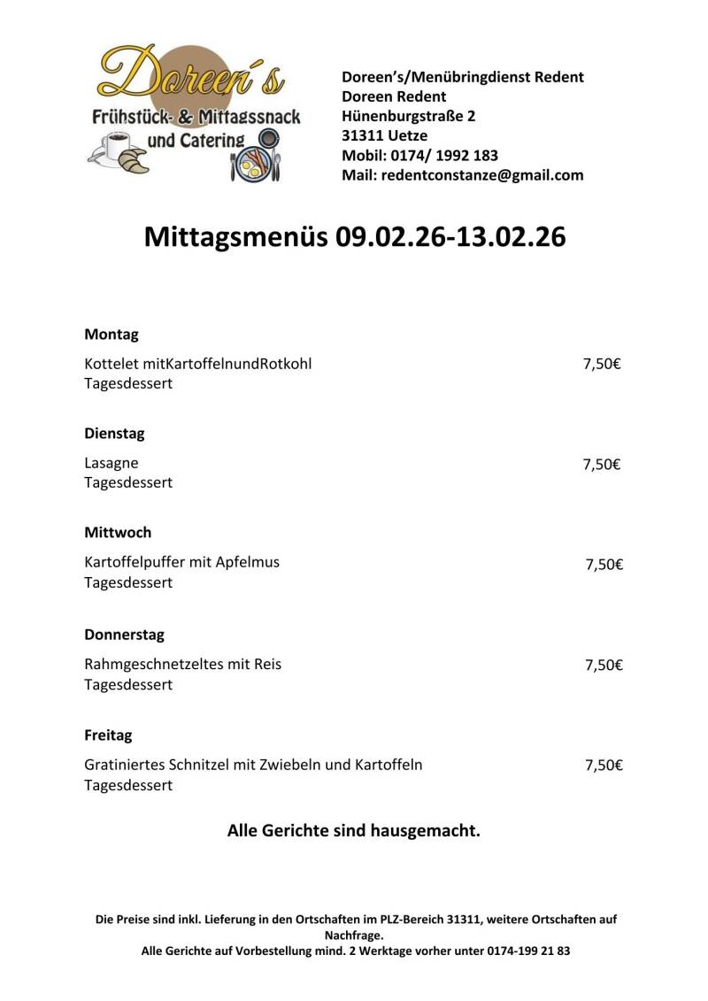 Unsere Neuen Mittagsmenüs Hausgemacht zum kleinen Preis einfach Lecker